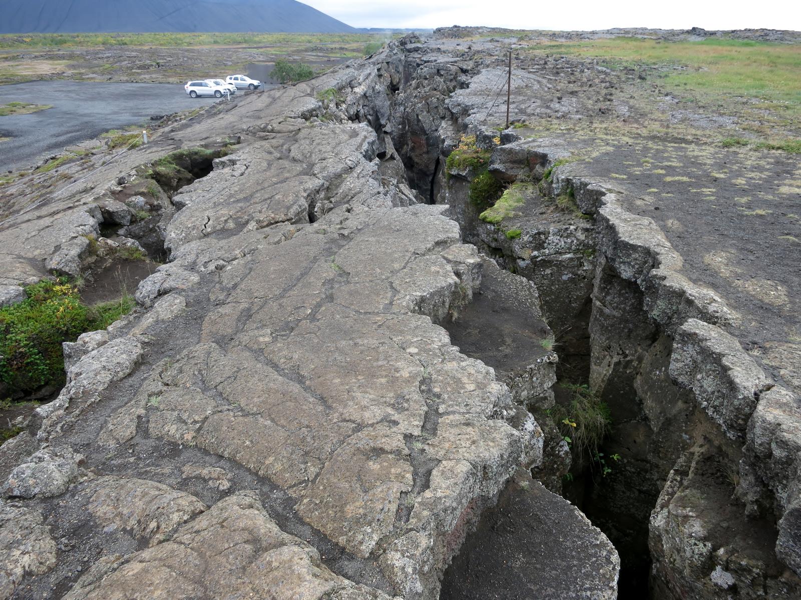 Letztendlich ging alles doch noch gut und wir erreichen das legendäre Pingvellir. Hier tagte ganz früher das Parlament von Island, doch nicht nur das. Plattentektonisch begegnen sich hier die nordamerikanische sowie die eurasische Platte. Mittlerweile hat sich eine tiefe, vegetationsreiche Senke gebildet, deren Abschluss der Pingvellirsee bildet.