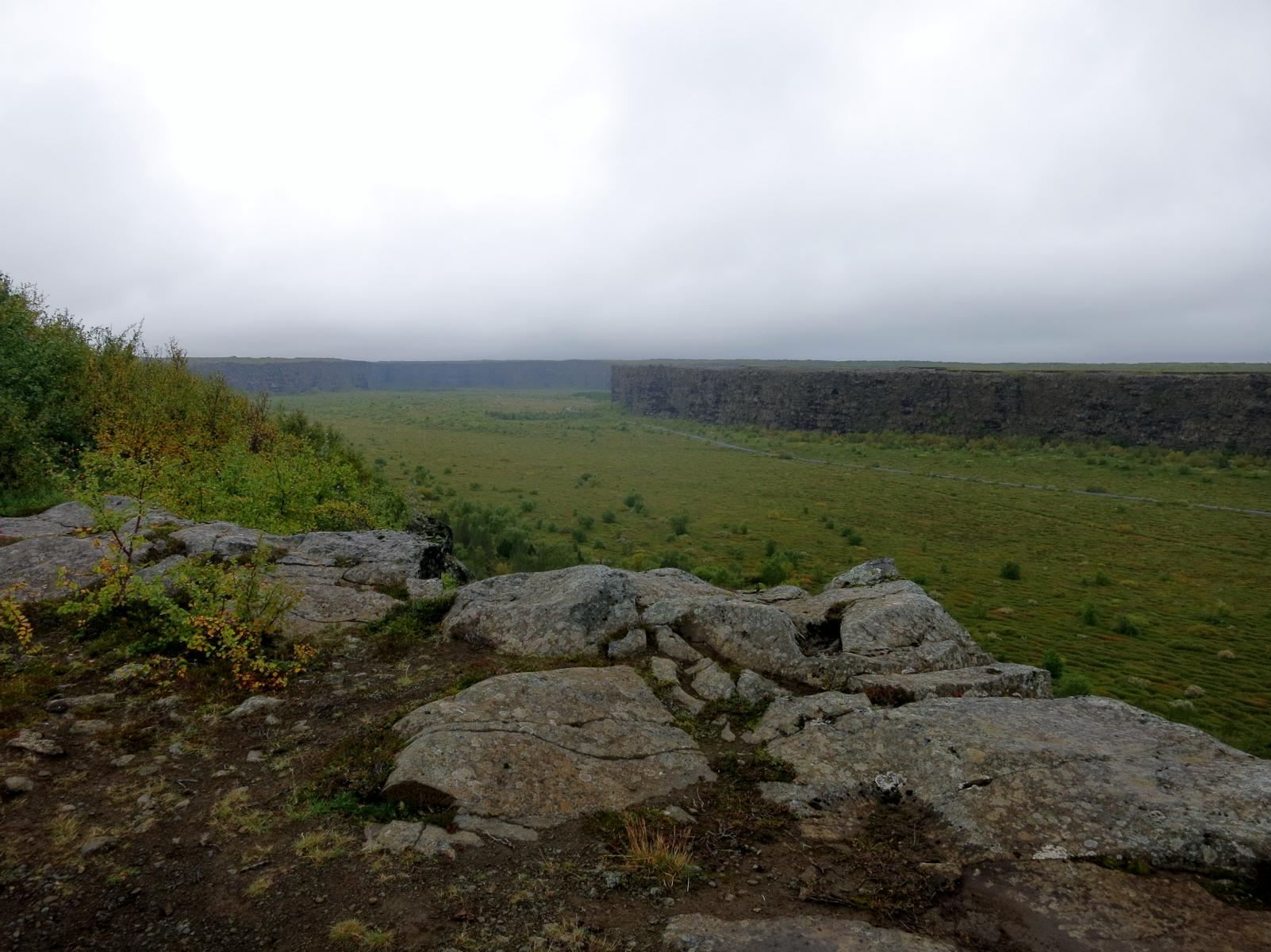 Vom Campingplatz Skipalaekur starten wir wohl in den eindrucksvollsten Tag unserer Reise. Zunächst geht es im Regen los Richtung Myvatn. Die steten Tropfen auf unser Autodach lassen uns uns einfach langsam sein. Die Fahrt entlang der Ringstraße geht durch das Tal der Jökulsa.
