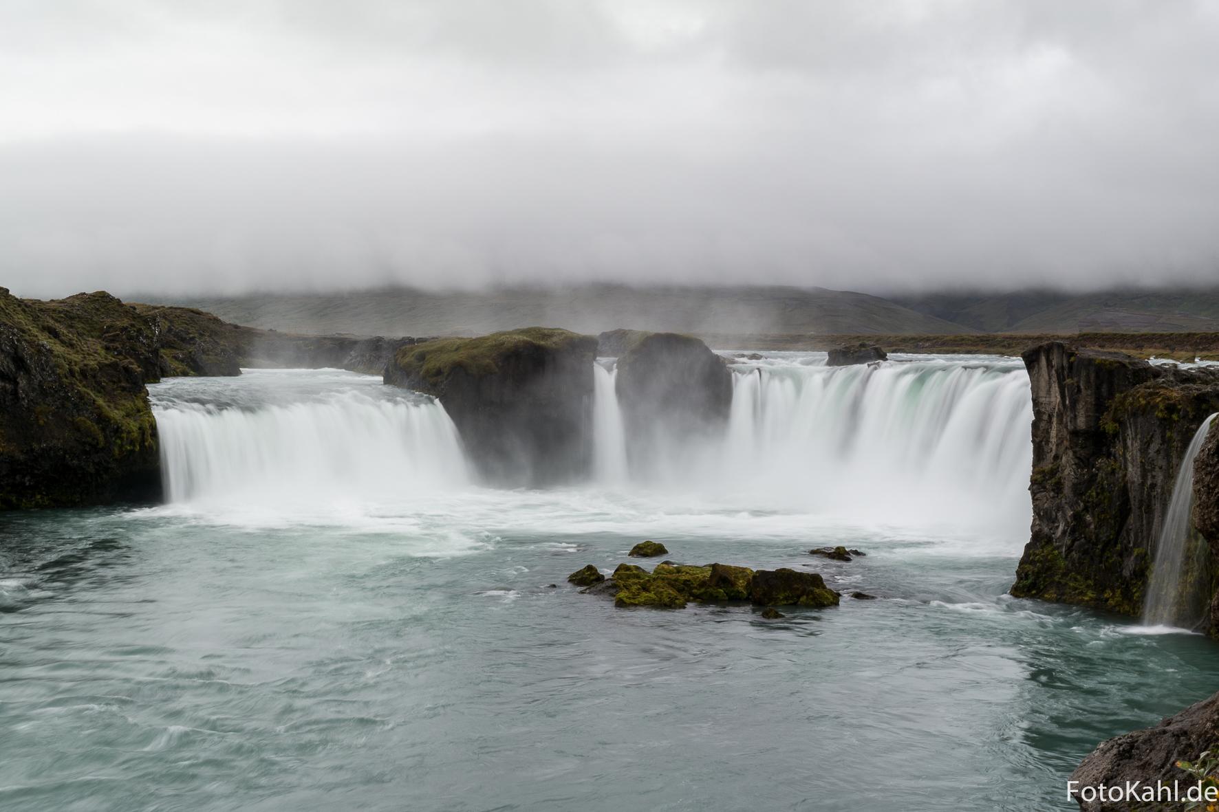 Gleiches Spiel hier, unglaublich viele Menschen. Verständlich. Denn alle wollen den größten Wasserfall von Island sehen, welcher sich in 2 Stufen gute 31 Meter in die Tiefe stürzt. Irre. Die Sonne schenkt uns sogar in diesem Moment ein kleines Lächeln – der Anblick ist sagenhaft. Ich lasse einfach meine Gedanken ein wenig in dem Getose schweifen und schüttele mir nach dem kleinen Spaziergang die üppigen Wassertropfen der Gicht von der Jacke. Gott sei Dank hat Marcus sie vor der Reise noch mal ordentlich imprägniert. Gerade als wir wieder im Auto sitzen, beginnt der echte Regen. Diesmal von oben.