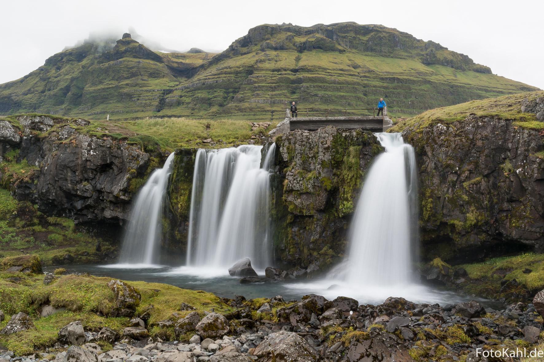 Genialster Anblick bietet ein zuckerhutartiger Berg. Und man ahnt es kaum, kurz hinter dem Ort kommt schon wieder ein Wasserfall. Der Kirkjufellfoss. Dieses Mal sind es nur ein paar Schritte von der Straße aus. Sehr praktisch für die unzähligen Bustouristen, welche an diesen Stellen besonders gern rausgelassen werden.