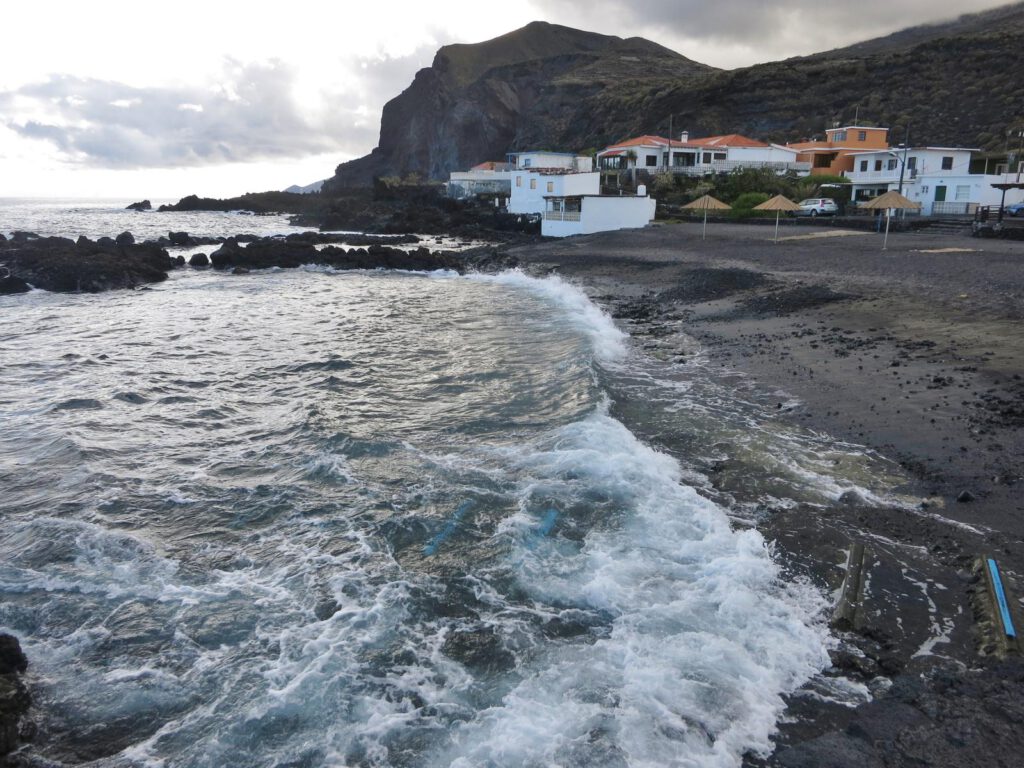 Das Restaurant hat einen direkten Zugang Richtung Meer und sogleich stehen wir inmitten von Wochenendhäuschen. Die Zeit scheint auch hier ein wenig stehengeblieben zu sein. Am schnellsten bewegen sich noch die vielen roten und schwarzen Krebse, als wir auf die vorgelagerten Felsen treten. Die Nachmittagsflieger schweben knapp über der Ostküste von La Palma ein und wir freuen uns, dass wir mit der Wohnortwahl Los Llanos an der Westküste alles richtig gemacht haben.