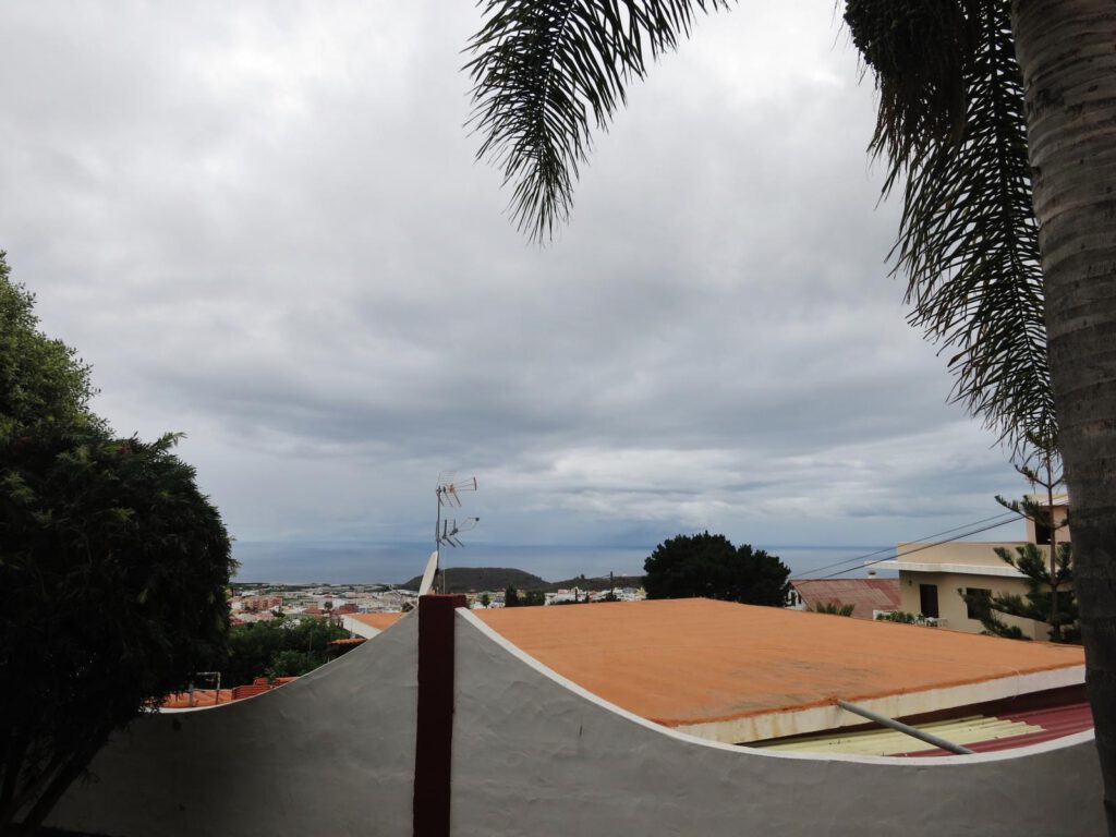 Wolkenverhangen begrüßt uns dieser erste richtige Tag auf La Palma. Um ein wenig zu aklimatisieren stellen wir erste Erkundungen in der näheren Umgebung an. Zuerst besuchen wir den Mirador de la Cancelita. Einen Aussichtspunkt. Irgendwo endet die Fahrstraße, wir stellen das Auto an einem sehr kleinen, nicht beschilderten Parkplatz ab und gehen die letzten paar Meter. Was uns gleich auffällt sind die vielen oberirdisch verlaufenden Wasserleitungen. Und genau die sind der Grund, warum man das Trinkwasser auf La Palma zwar rein theoretisch aus der Leitung trinken könnte. Praktisch jedoch immer mit Keimbelastung rechnen muss, da diese Leitungen natürlich der prallen Sonne ausgeliefert sind. Damit bieten sie einen hervorragenden Nährboden. Also lieber Flaschenwasser kaufen.
