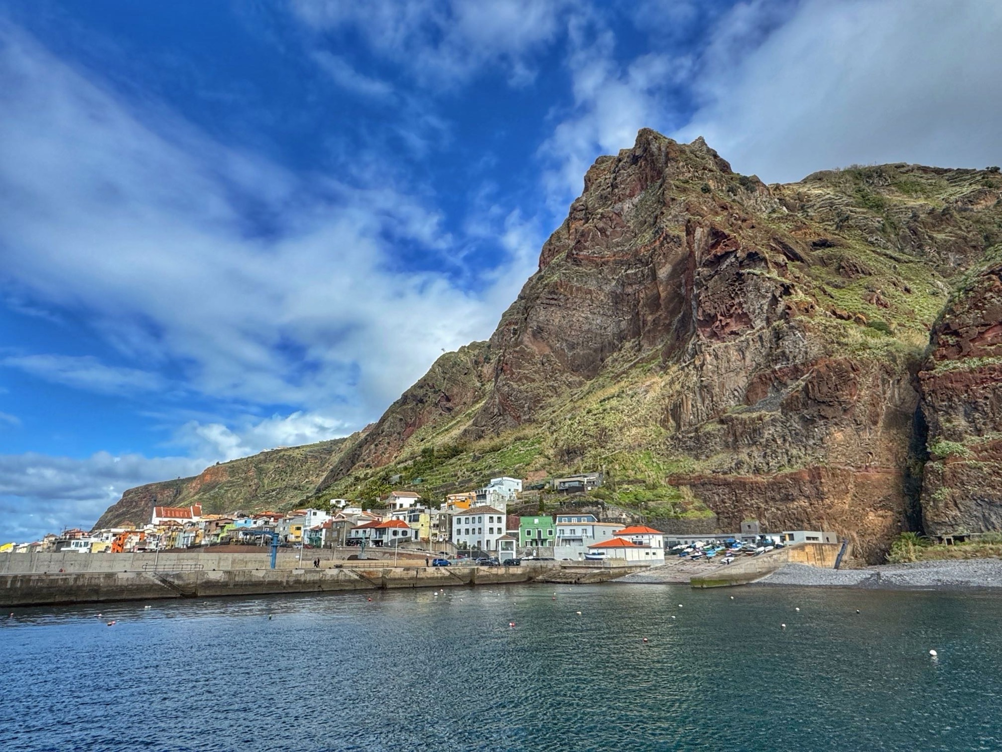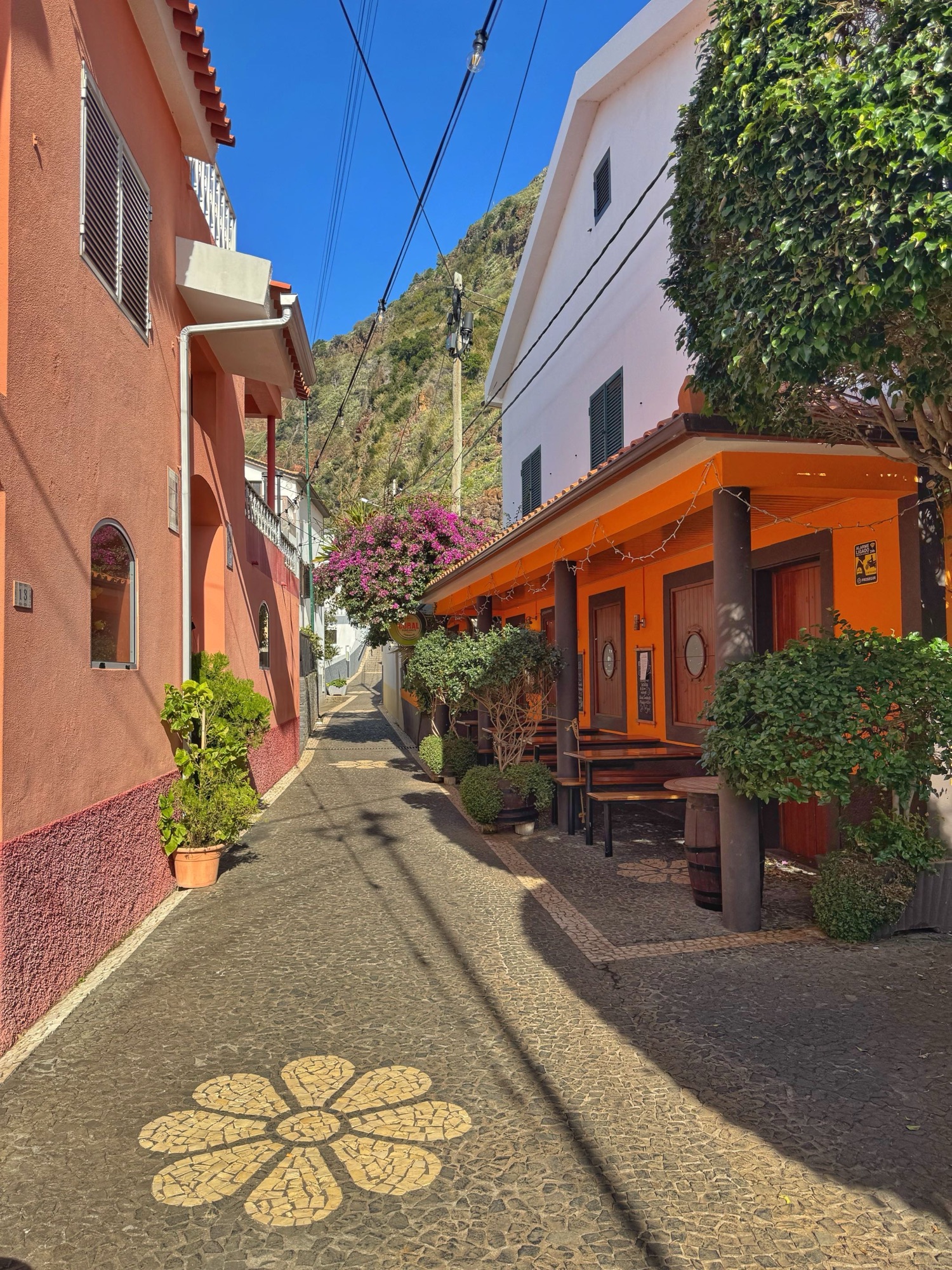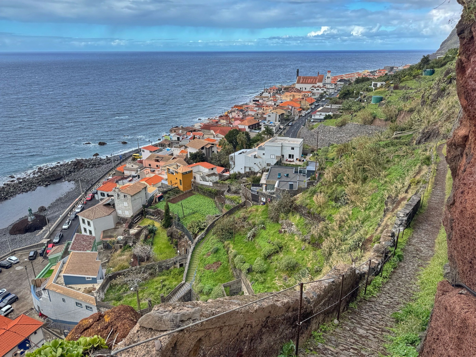 Paar Meter weg vom Strand erwische ich diesen recht hübschen Blick auf die Terassenhänge und paar Häuser des Dörfchens Ribeira de Janela. Schaut alles ganz ruhig und idyllisch aus – rund um uns tummeln sich allerdings eine Menge Touristen.