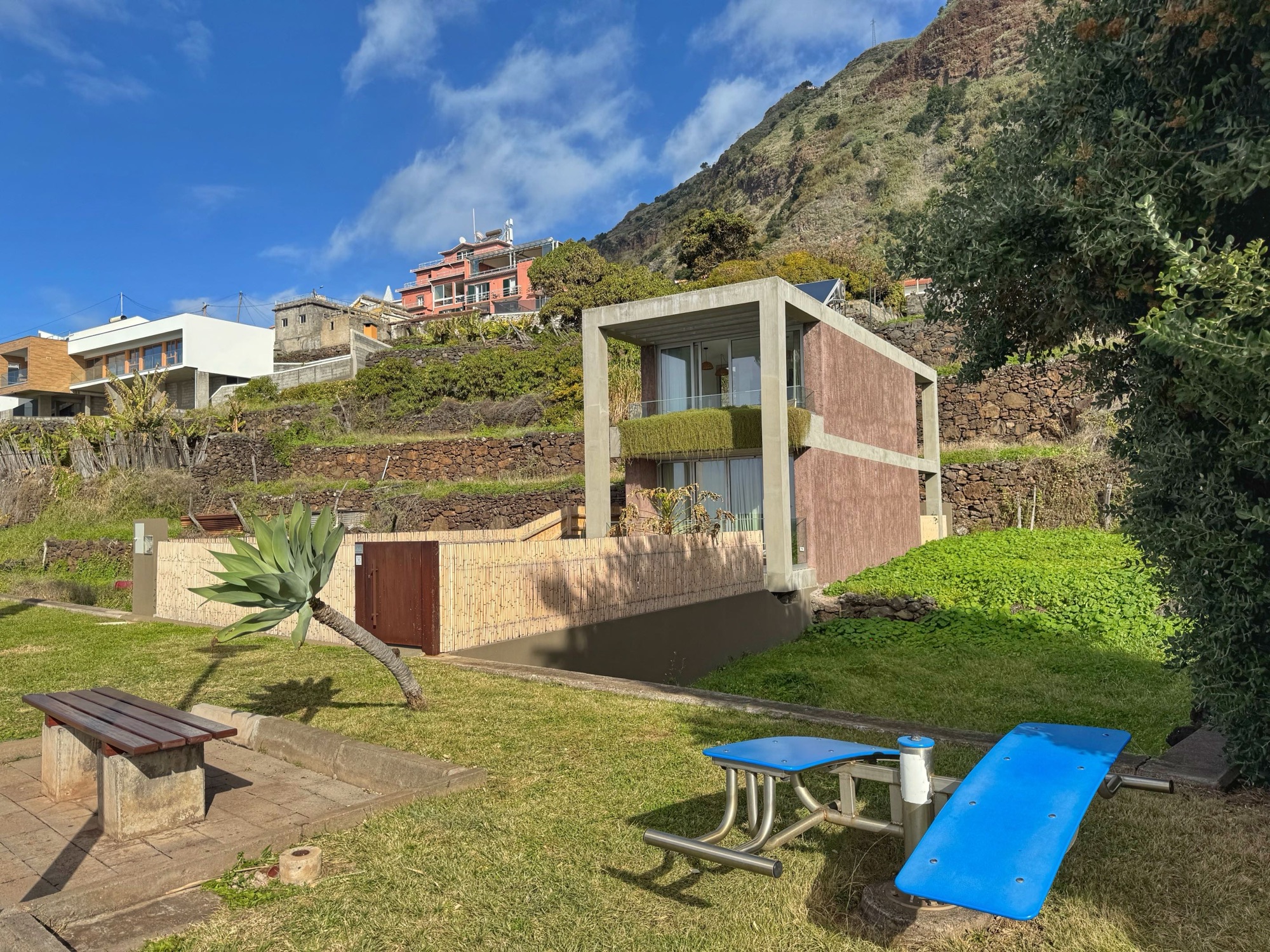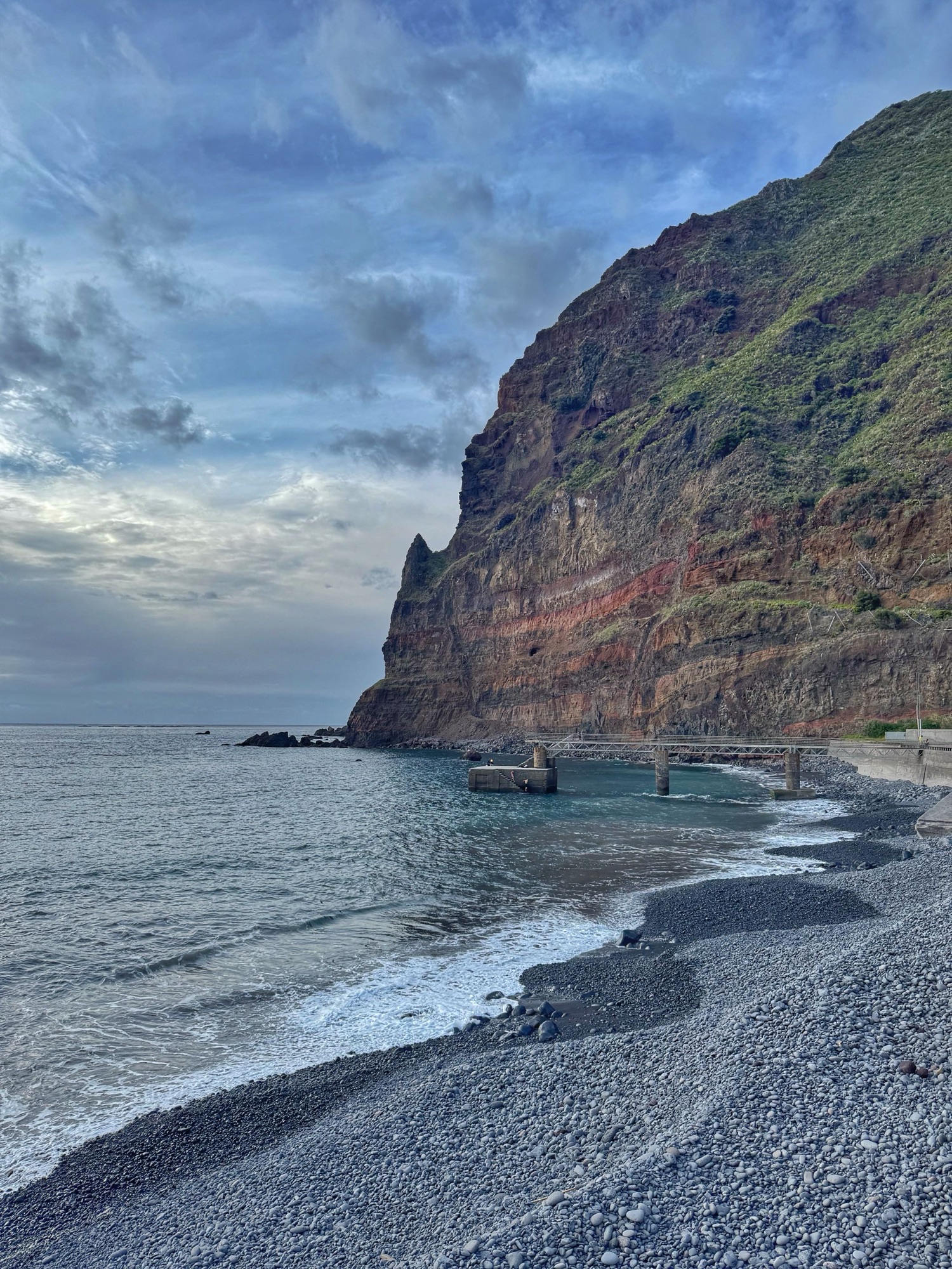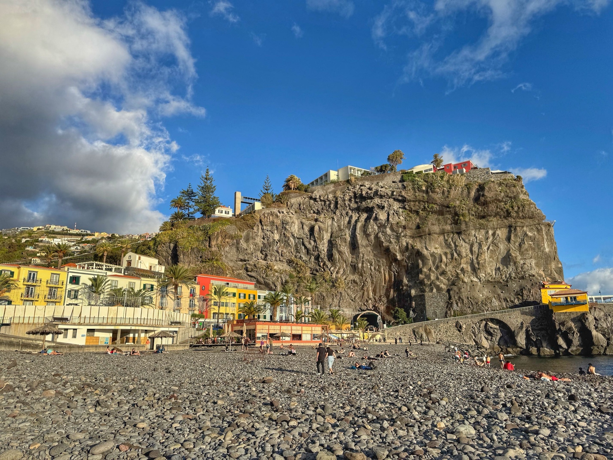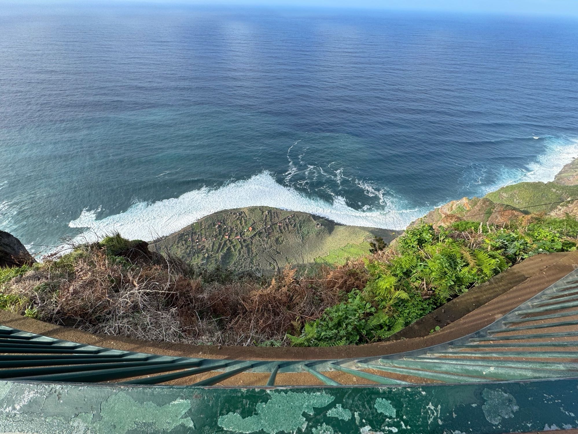 Paar Meter weg vom Strand erwische ich diesen recht hübschen Blick auf die Terassenhänge und paar Häuser des Dörfchens Ribeira de Janela. Schaut alles ganz ruhig und idyllisch aus – rund um uns tummeln sich allerdings eine Menge Touristen.