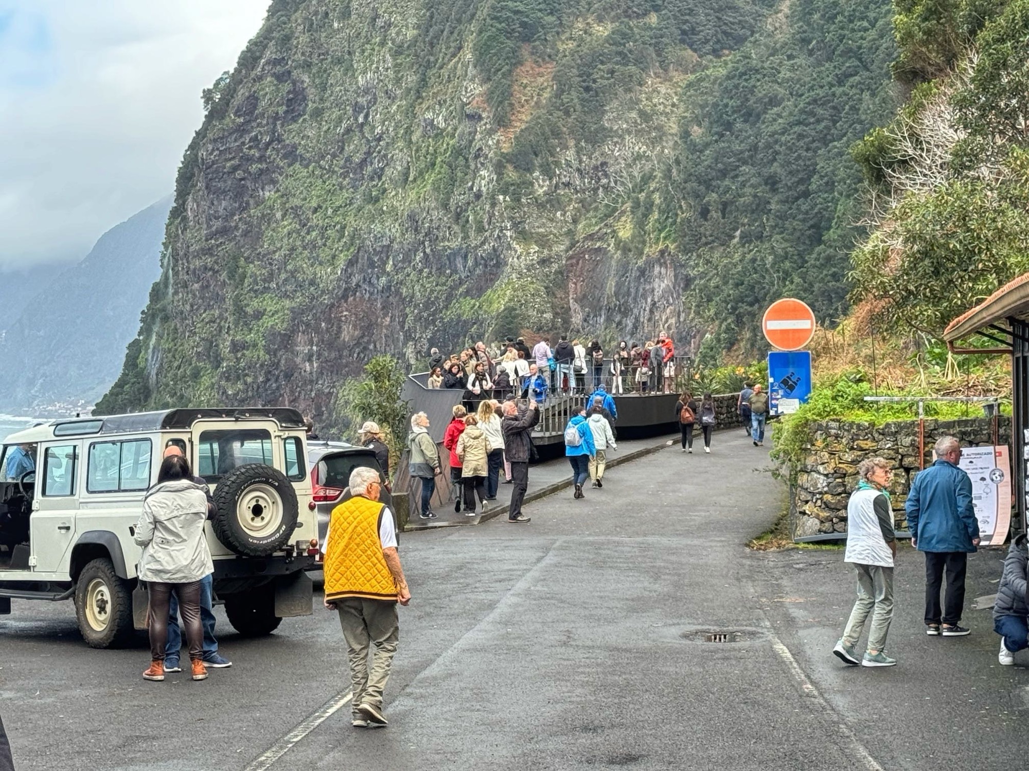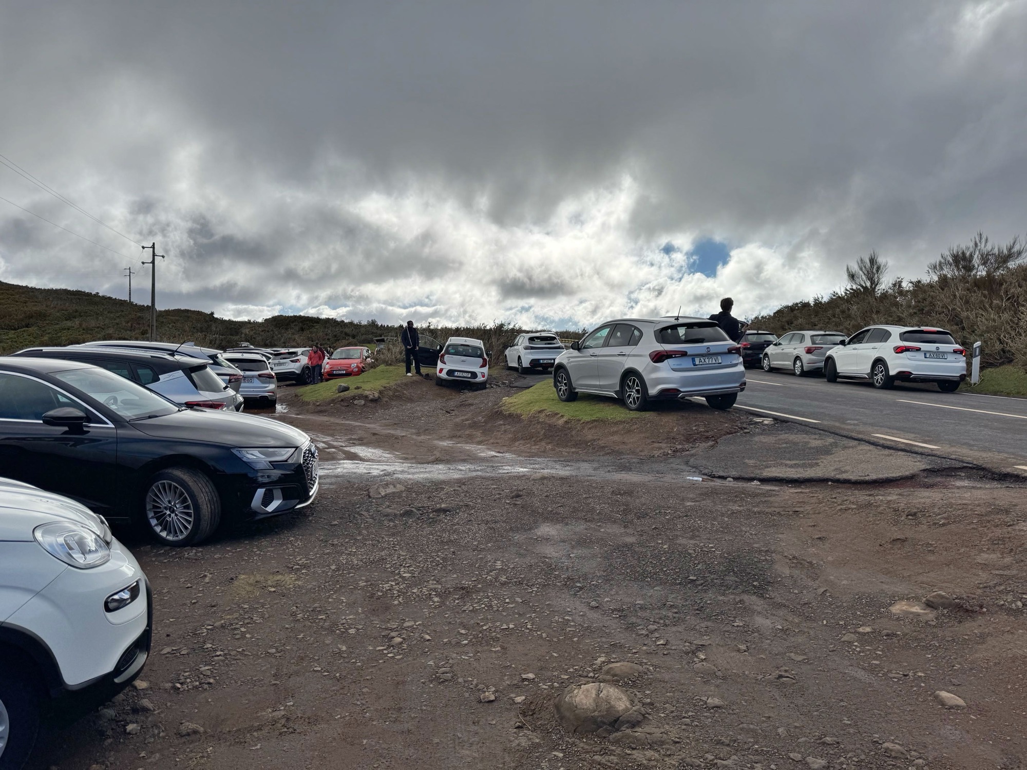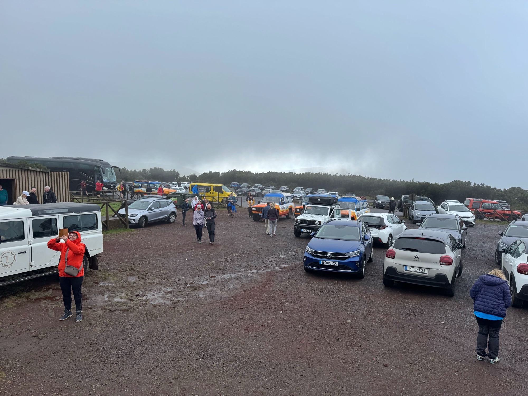Irgendwann erreichen wir „Parking Fanal“. Es ist zwar noch Platz auf dem Parkplatz aber dennoch eine Menge los. Just als wir ankommen, lädt ein Bus eine Horde Touristen aus. Parken ist kostenfrei und es gibt ein WC.