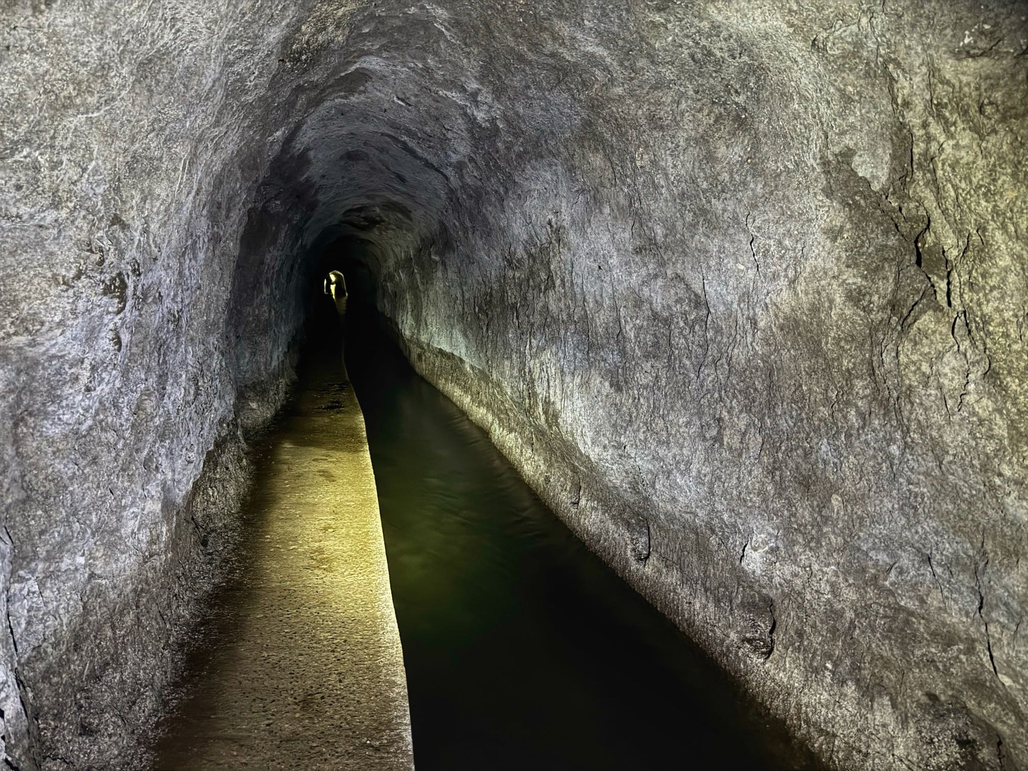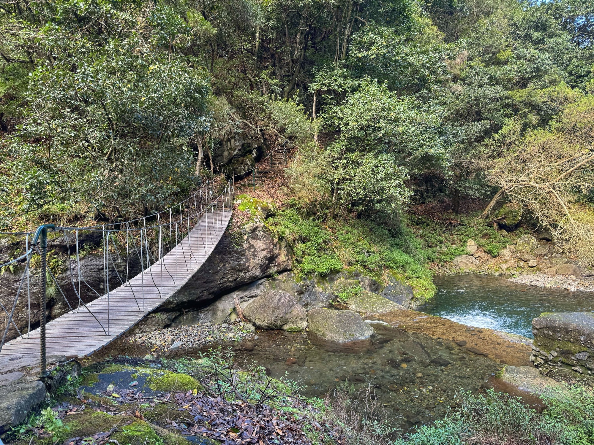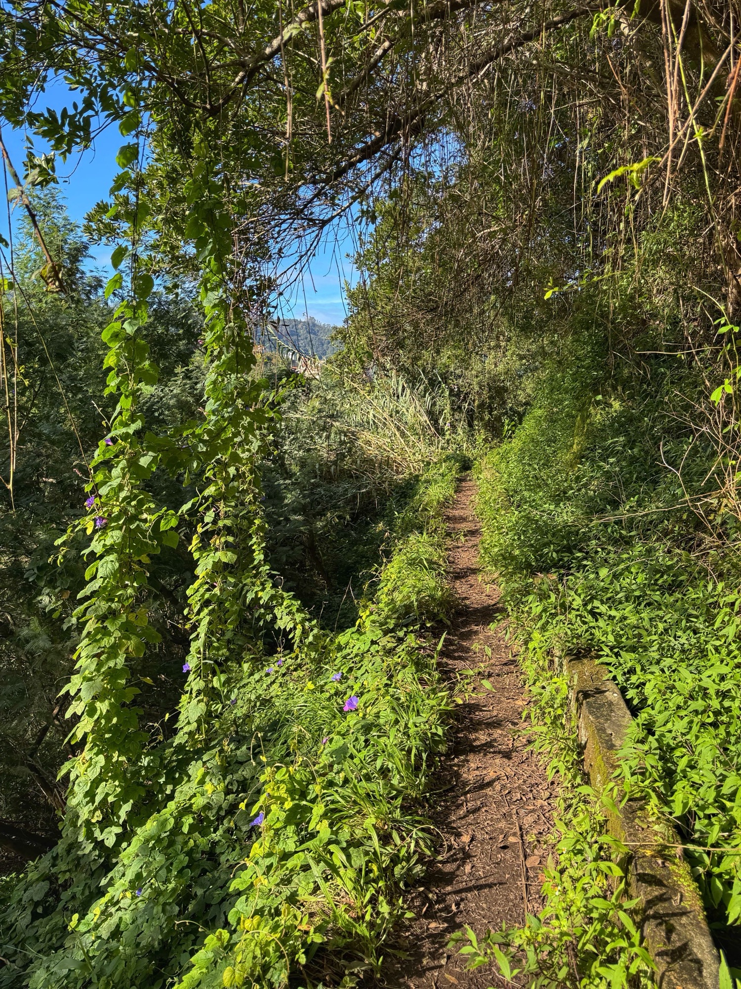 Auf dem kommenden Bild siehst du einen kleinen Eindruck von „minimal gefährlich“. Absturz ist auf dieser Levada bei Unachtsamkeit möglich aber eher unwahrscheinlich. Natürlich ist der nasse Boden rutschig, auch das birgt ein gewisses Risiko, was für uns aber keine große Hürde dargestellt hat.