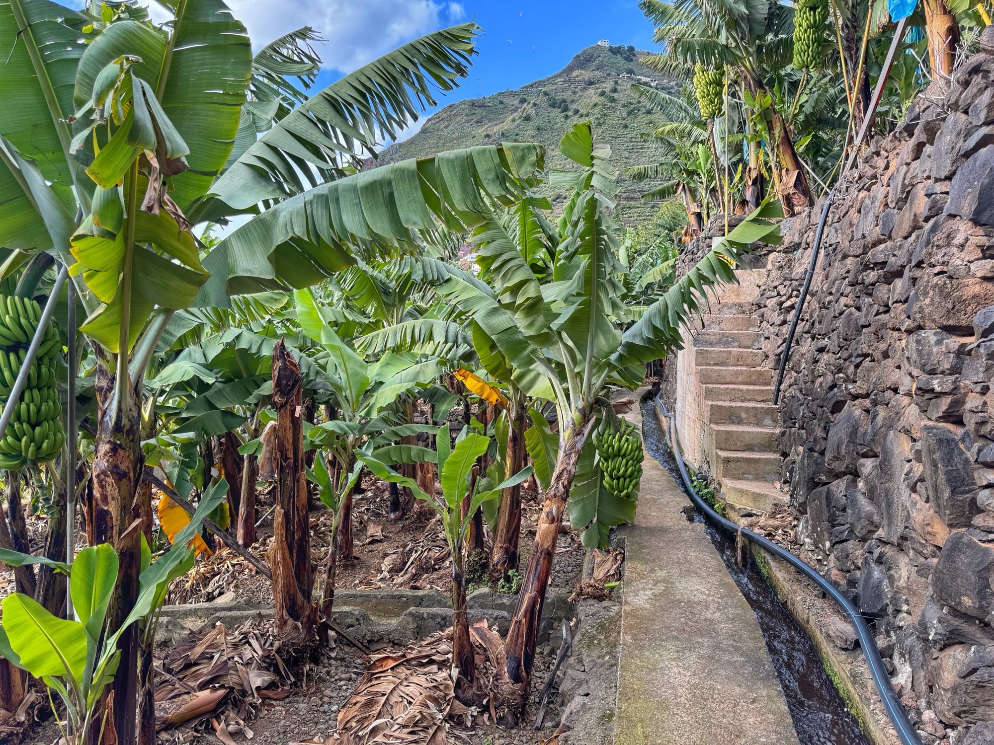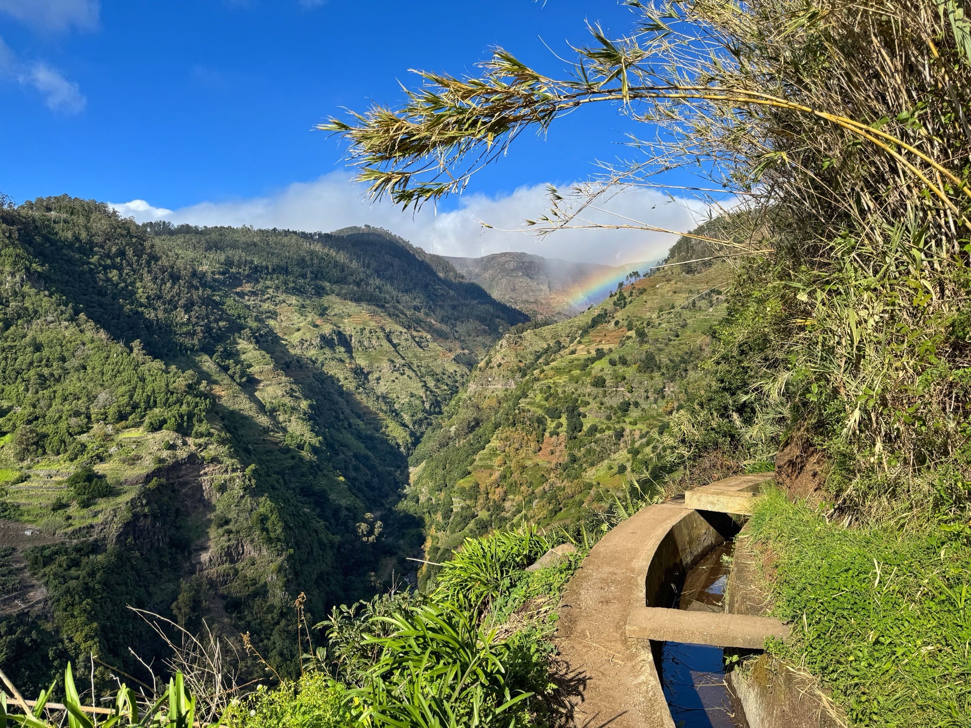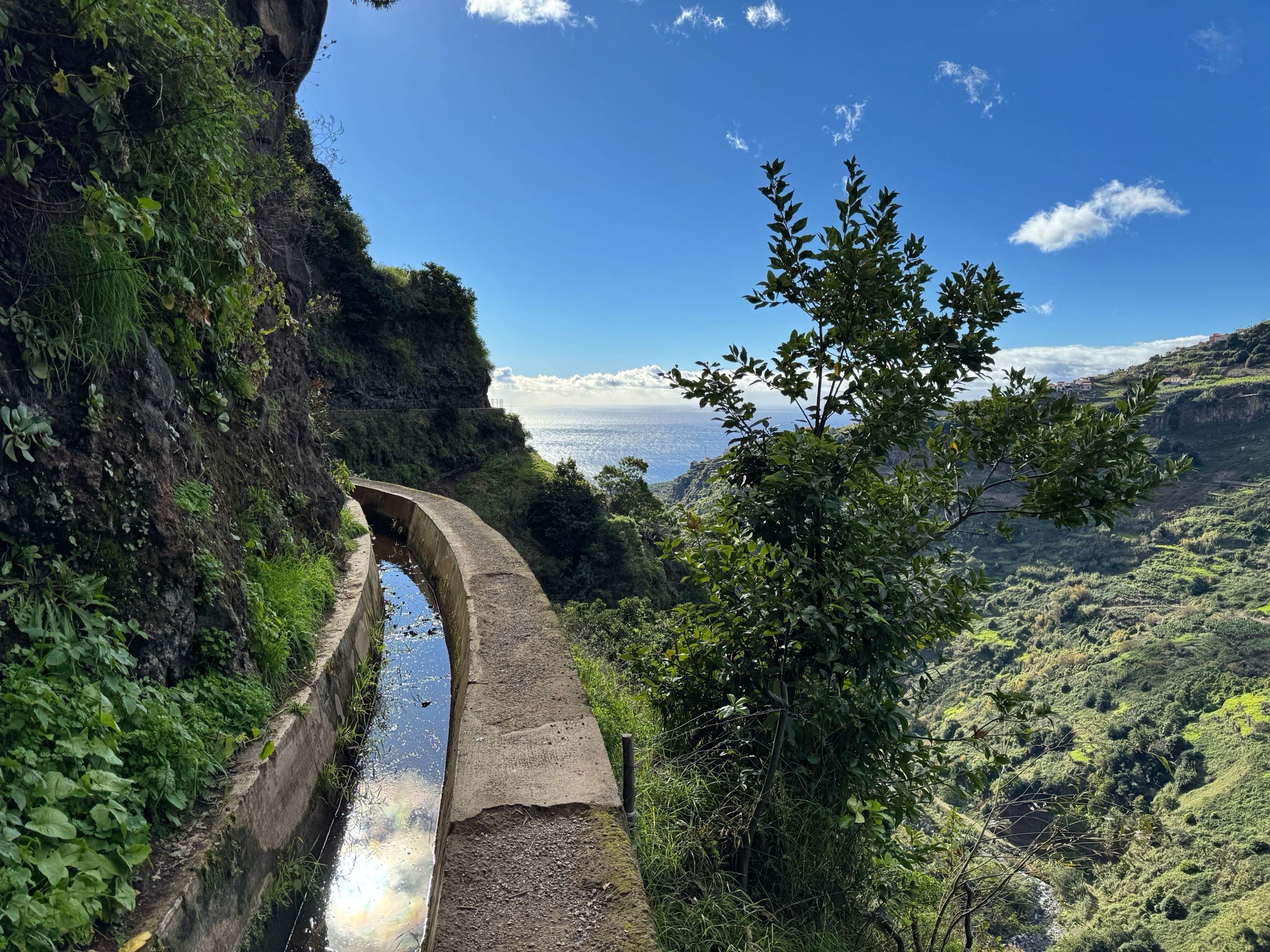 Nur wenige Kilometer von der Kirche entfernt finden wir die bereits oben erwähnte Levada. Unserer erste Levada in diesem Urlaub – einer von unzählig vielen Wasserkanälen zur Bewässerung wasserarmer Gegenden und ganz typisch für Madeira.