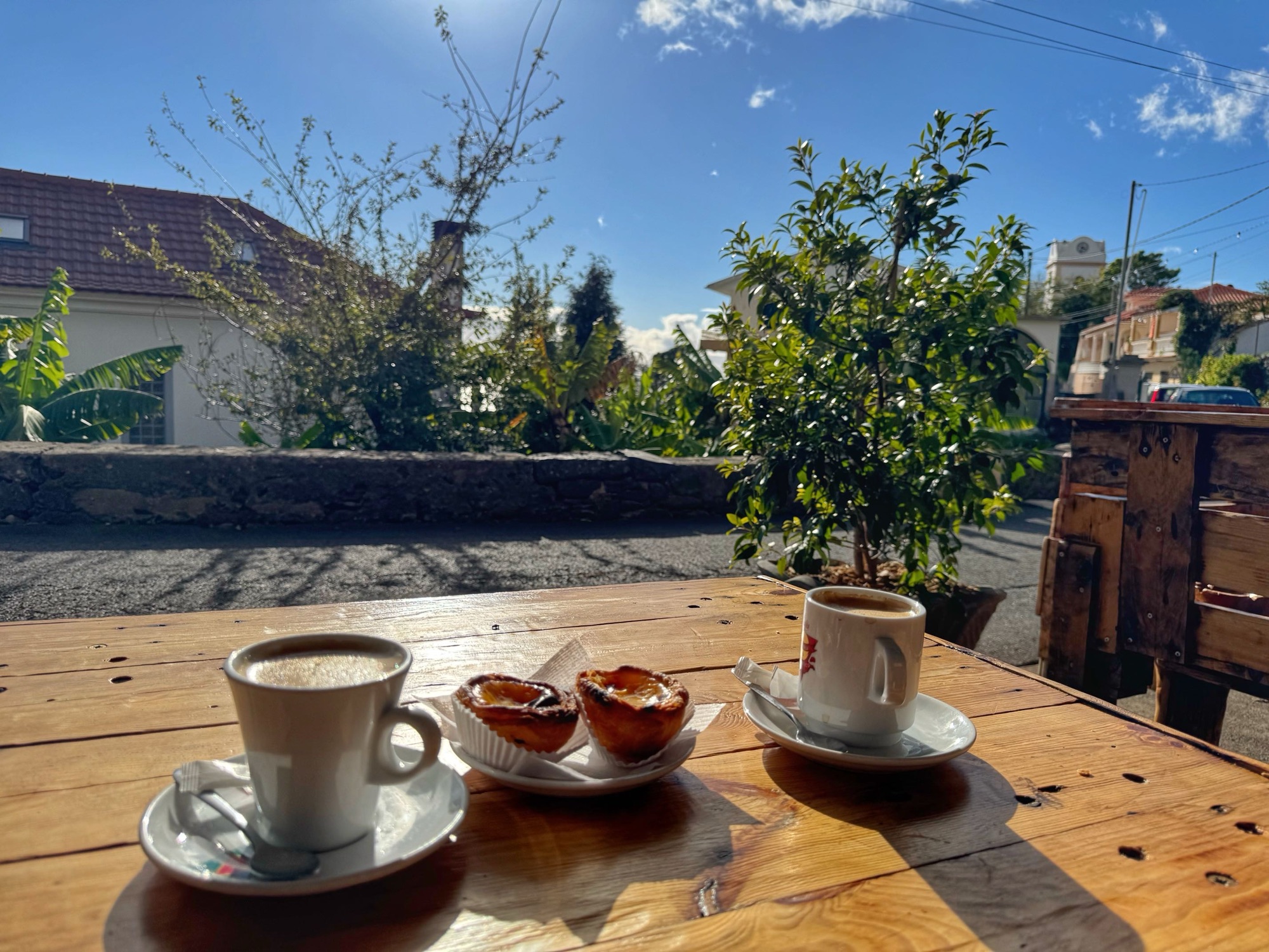 Unweit dieser Levada gibt es das kleine „XS Café“ hier soll es laut google-Bewertung die für Madeira so typischen „Pastel de Nata“ geben. Natürlich ist die Kuchentheke gegen 14.30 schon ausgeräubert – aber ein Brownie, ein Apfelkuchen und zwei Cappuccino gab es noch. Kostenpunkt für alles: 9,90 Euro.