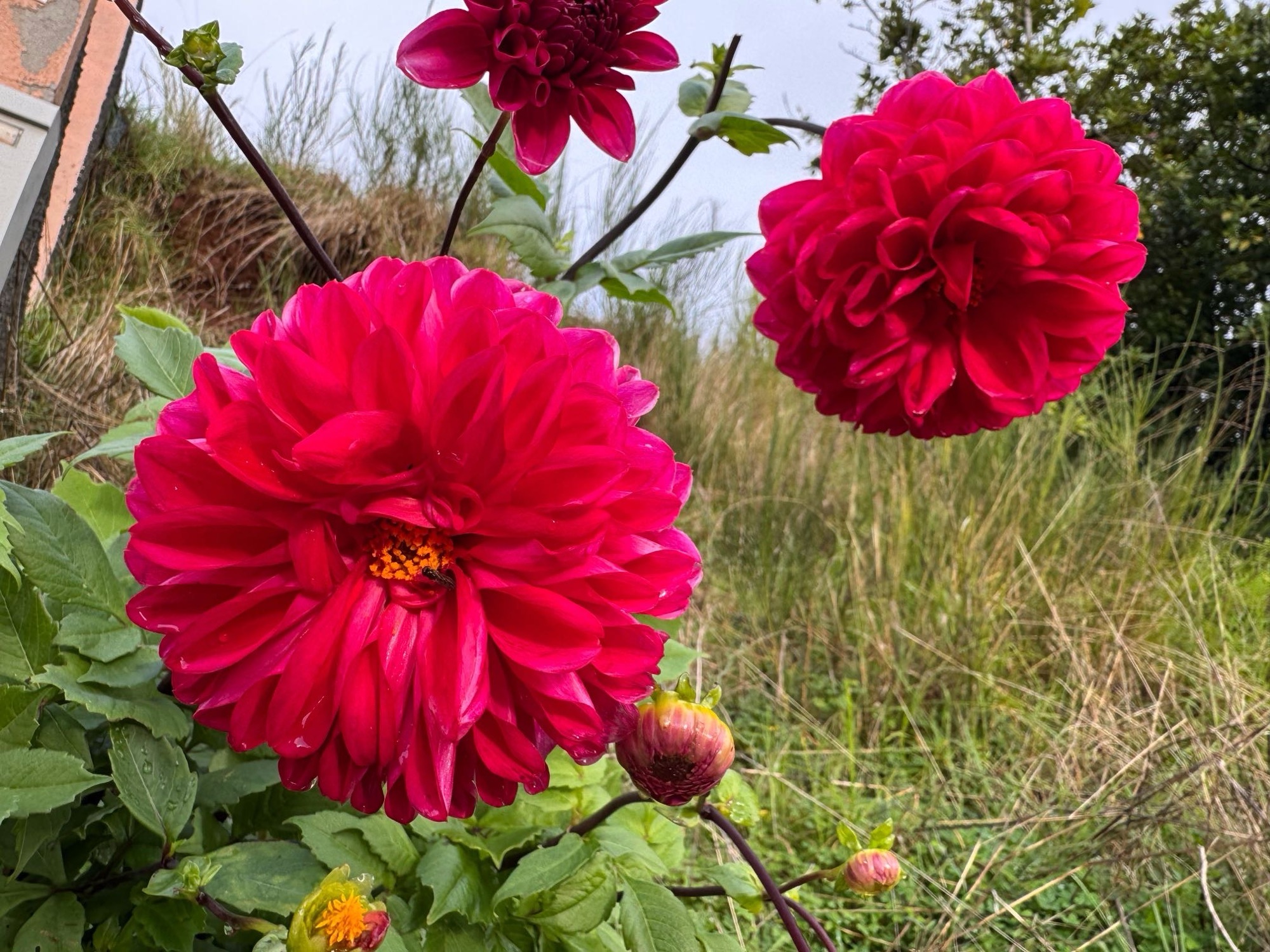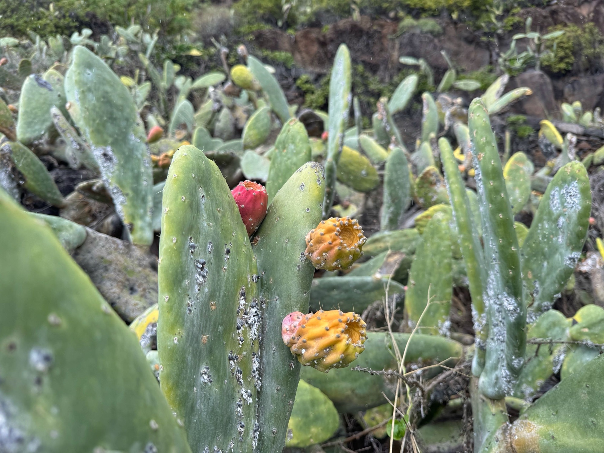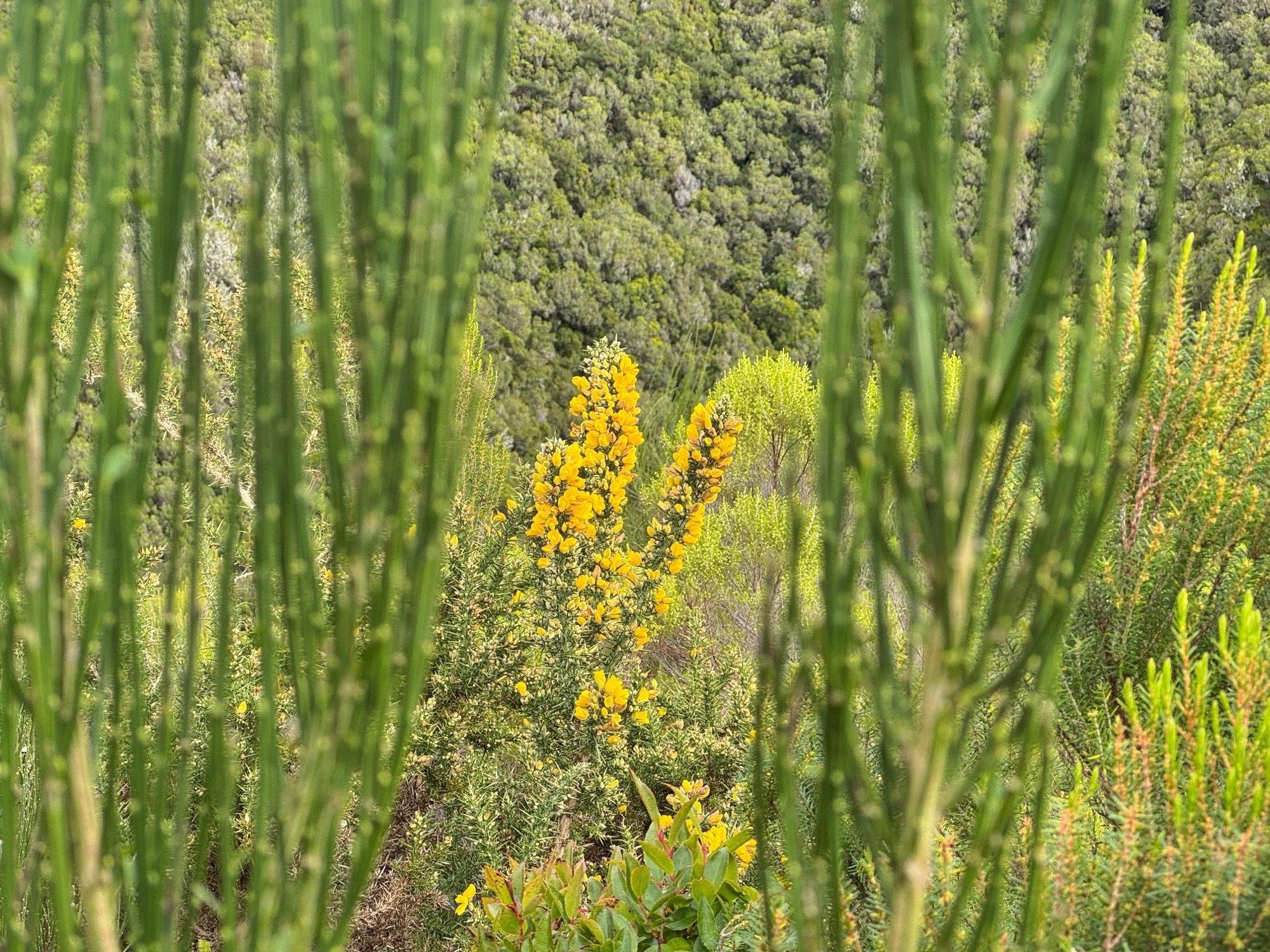 Regen und Sonne wecheln sich intervallweise ab, immer mal spurten wir ins Auto oder lassen uns einfach durch Sonne und Wind wieder trocknen. Hier an dieser Küste finde ich die „Blüte des Tages“. Der ganze Busch besteht aus 3 Farben und schaut in der Sonne fantastisch aus.