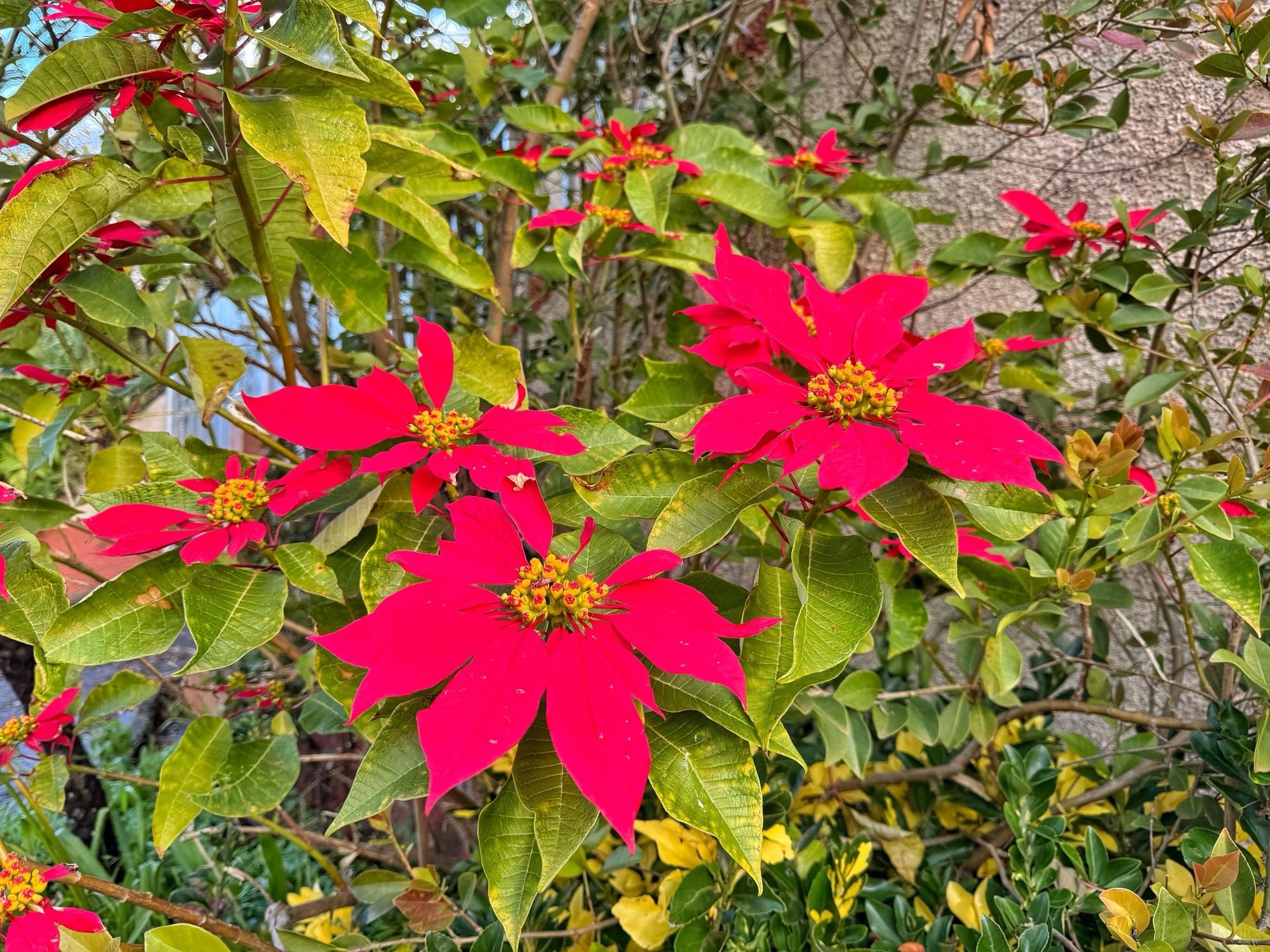 Streng genommen sind es jedoch Blätter, die hier diese tollen Farben haben. Die Blüten sind die kleinen weißen.