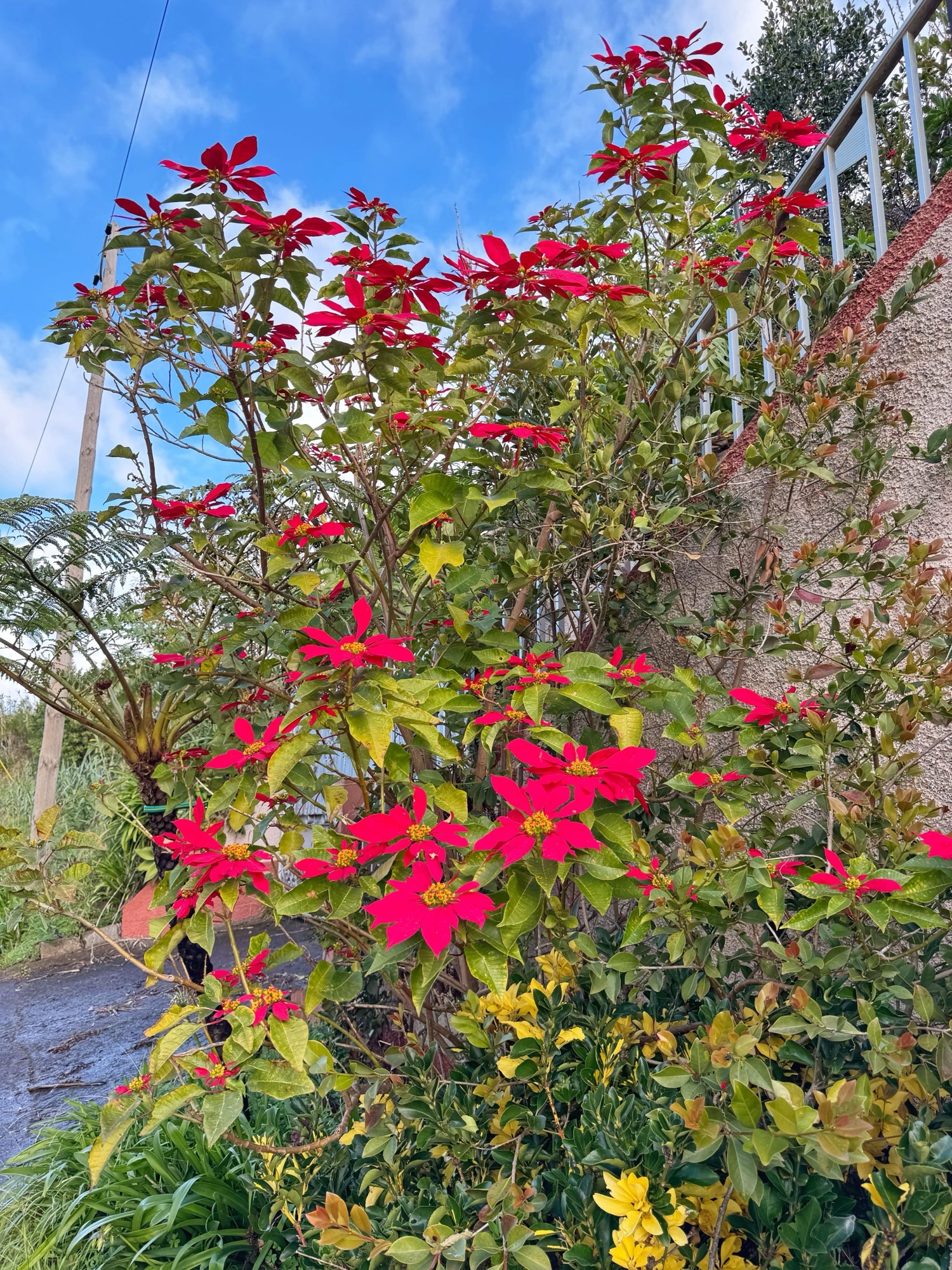 Madeira im Dezember könne wir als Mitteleuropäer uns nur schwer vorstellen – aber es ist ungefähr so: An den Bäumen in den Vorgärten hängen Zitronen, Orangen, Kaktusfeigen, Bananen. Wir sehen Adventssterne, um ein vielfaches größer als die, die wir zu Hause in unseren Töpfen haben. Achja und immer wieder schauert es, demzufolge gibt es einige Regenbögen: