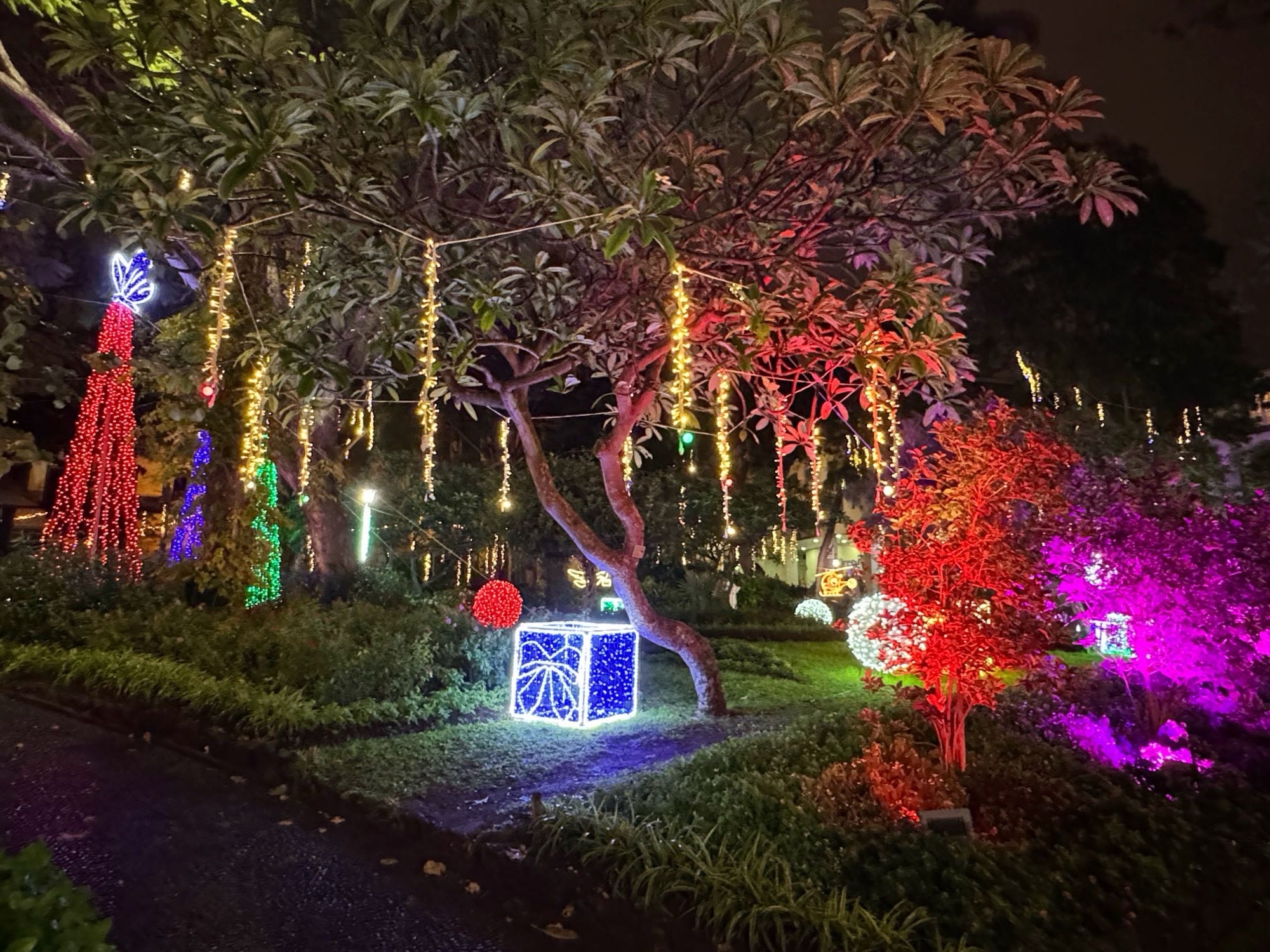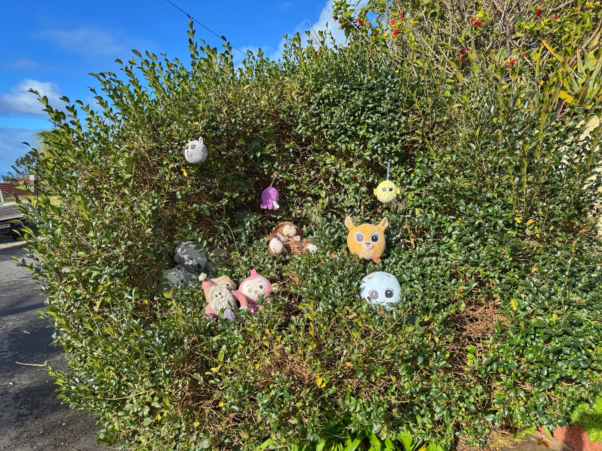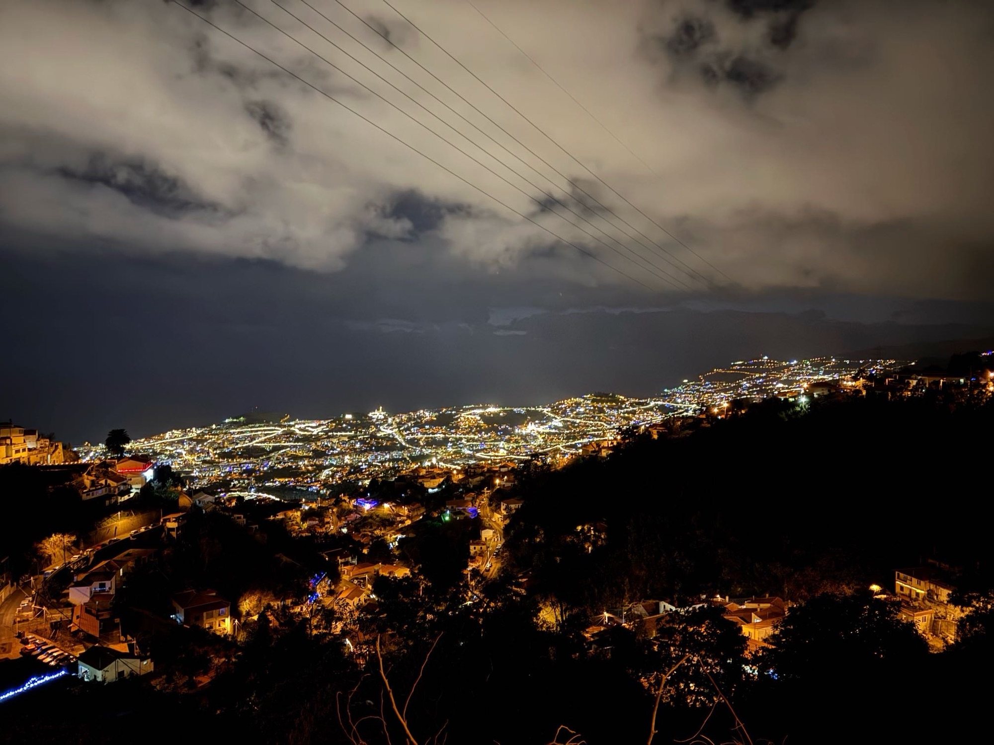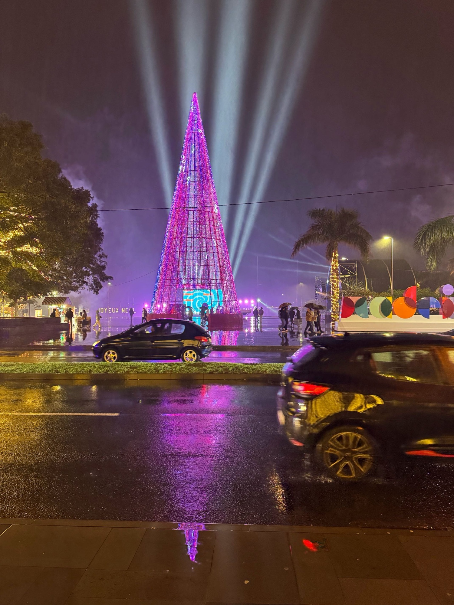 Kleiner Eindruck zumindest von einem der unzählig und variationsreich erleuchteten Kreisverkehre. Aus einem Tunnel raus, um so einen Kreisverkehr drumherum gefahren und in den nächsten Tunnel rein. Das ist Madeira.
