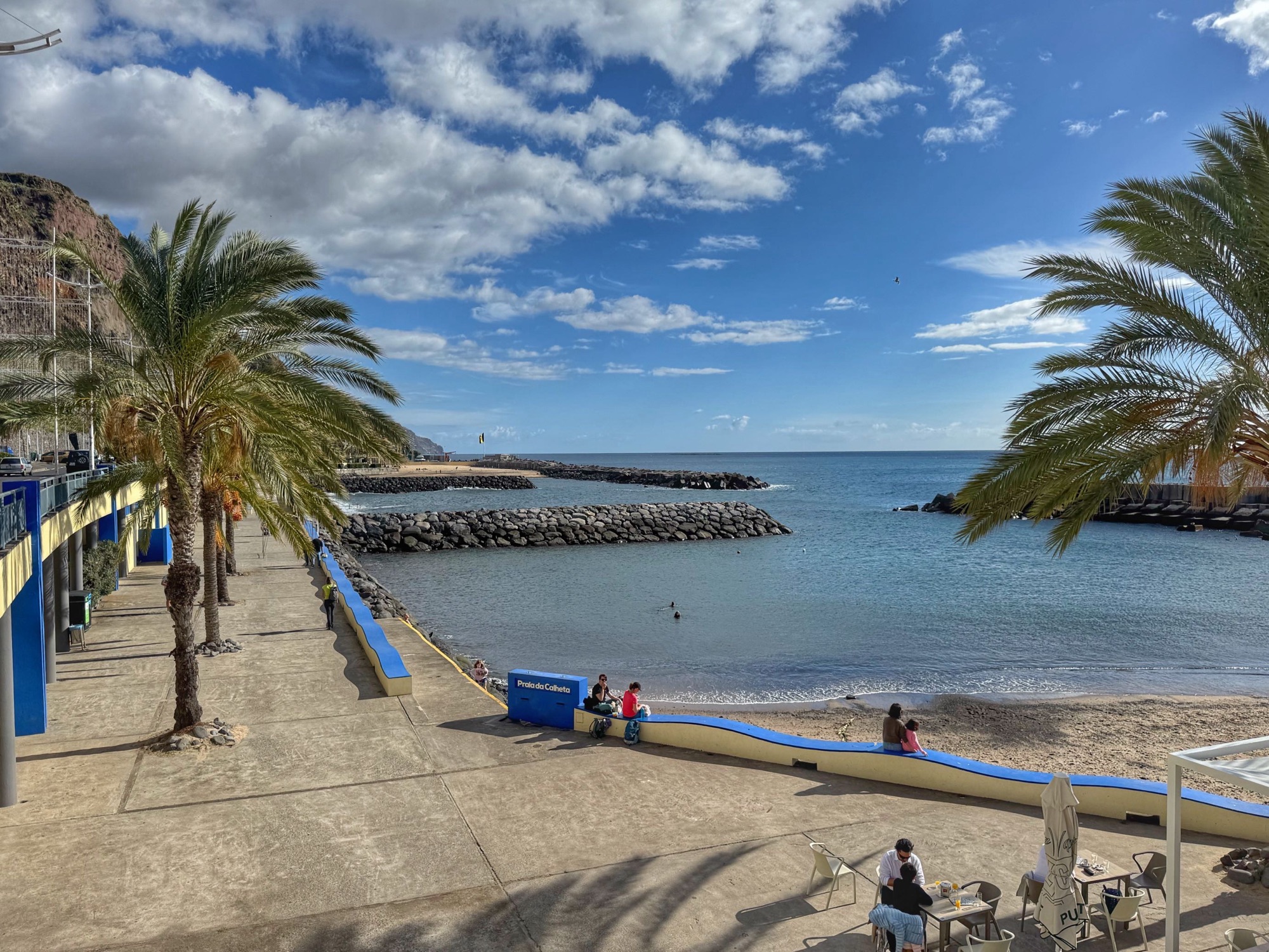 Meint er: „Zu kalt zum Laufen“. Herrlich oder? Er erklärt uns, dass nun Winter ist auf Madeira und 12 Grad am Abend einfach zu kalt ist. Finden wir irgendwie süß und lustig.