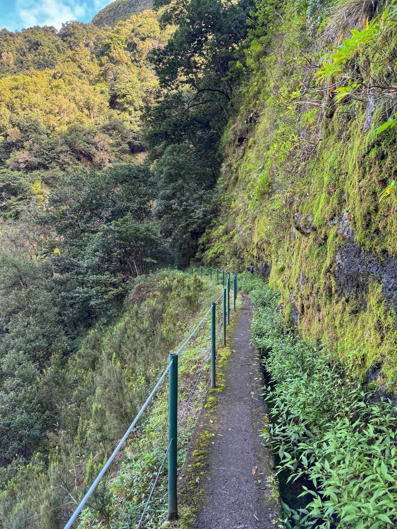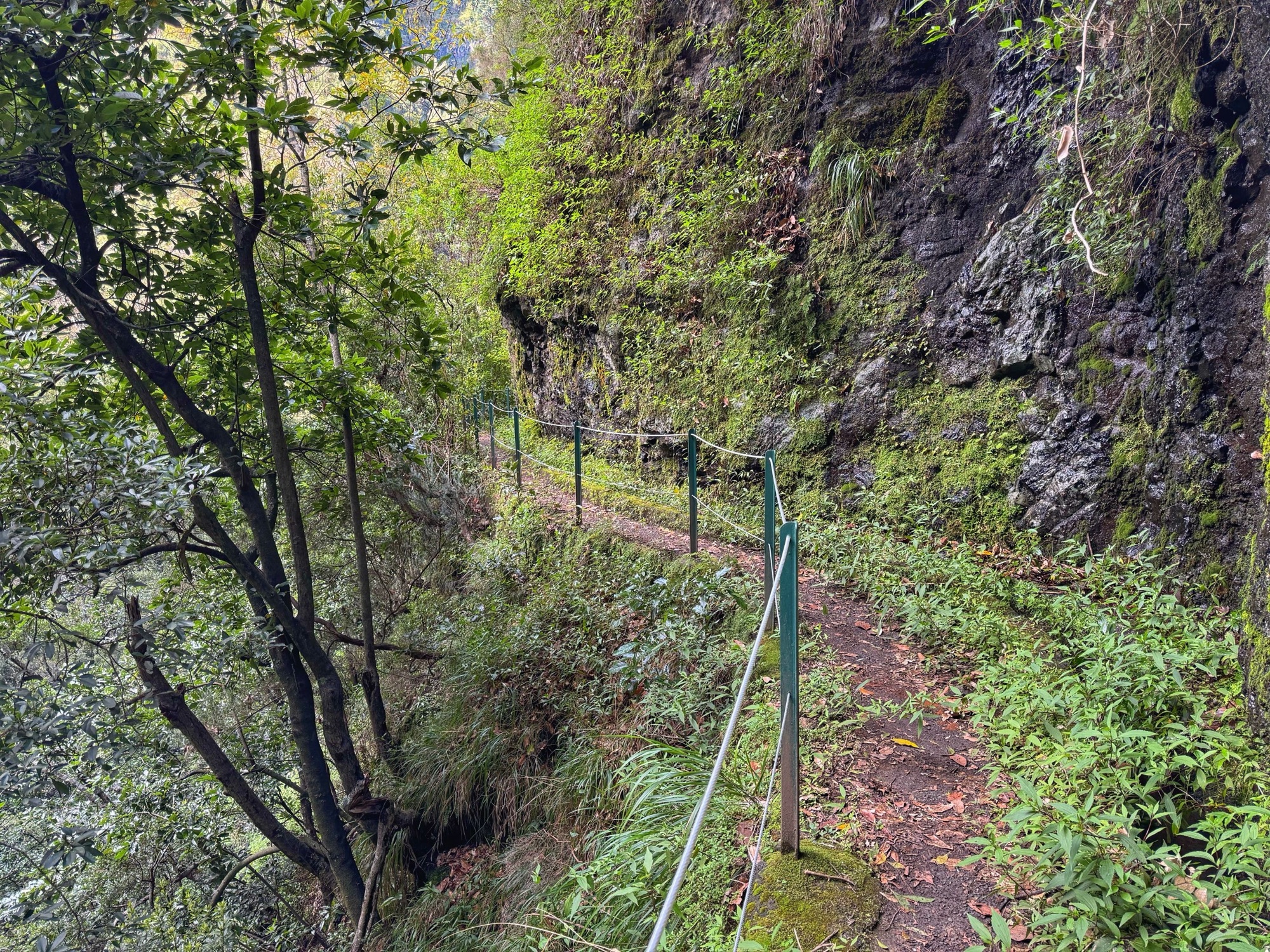 Die Levadas liegen in der Regel in schwer zugänglichem Gelände, häufig geht es steil am Hang hinunter. Diese Levada hat jedoch nur sehr wenige Stellen, die wir als leicht gefährlich einschätzen würden. Leicht gefährlich heißt ungesicherter Abhang aber immer noch genug Platz, um sicher laufen zu können.