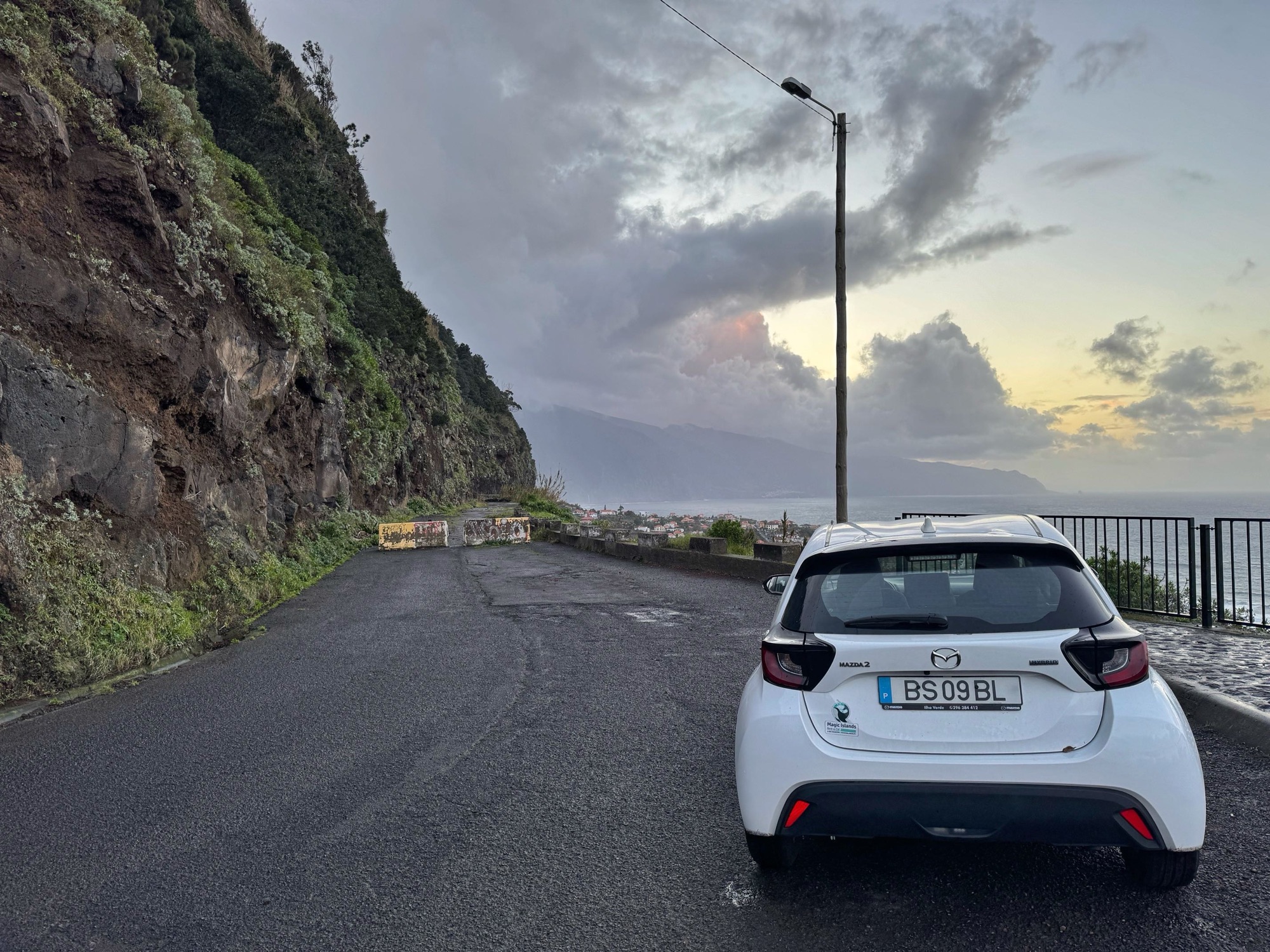 Dort erhalten wir unsere kleine weiße Nuckelpinne, die wir in Kürze hier mal vorstellen. Wir checken und dokumentieren die Beulen und düsen direkt zu einem Supermarkt. Gar nicht so leicht, sich für einen zu entscheiden, denn die üblichen Supermarktketten sind auf Madeira bisher nicht vertreten und so fällt die Wahl auf „Pingo Doce“. Ein Parkplatz ist quasi nicht wirklich vorhanden – ich springe aus dem Auto und Marcus kreiselt ein wenig. In Windeseile krame ich das Allernötigste zusammen.