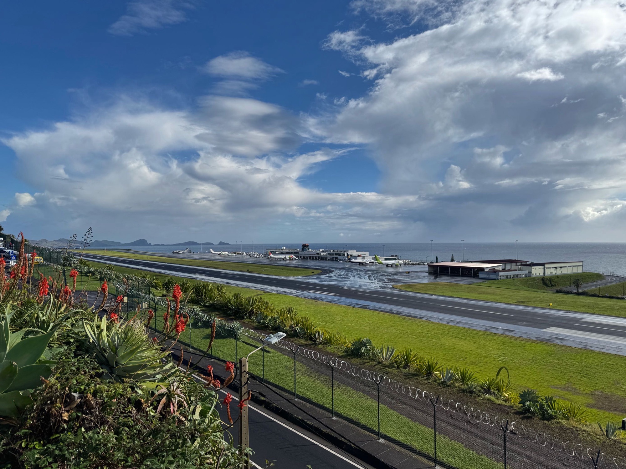 Madeira ist für seine spektakuläre Landebahn berühmt, der Anflug sensationell – vom Atlantik kommend schweben wir zwischen den Bergen ein. Für diese tollen Aufnahmen müsst ihr aufs Video warten, dass kann noch paar Wochen dauern.