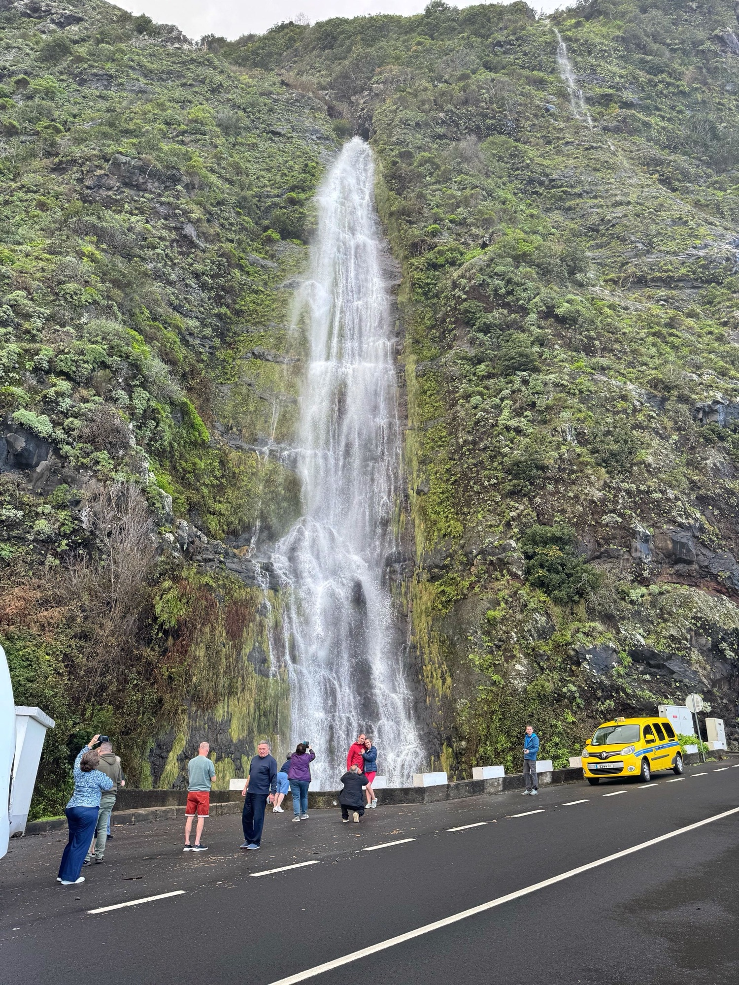 Auf einer alten, jetzt als Anwohnerstraße deklarierten Straße, fahren wir, bis es nicht mehr geht. 2017 konnten wir noch durchfahren – es ist die Straße, wo man mit dem Auto ein Wasserfalldusche nehmen konnte. Das geht jetzt nicht mehr. Trotzdem kommen die Menschen in Scharen. Das muss für die Locals schrecklich sein.