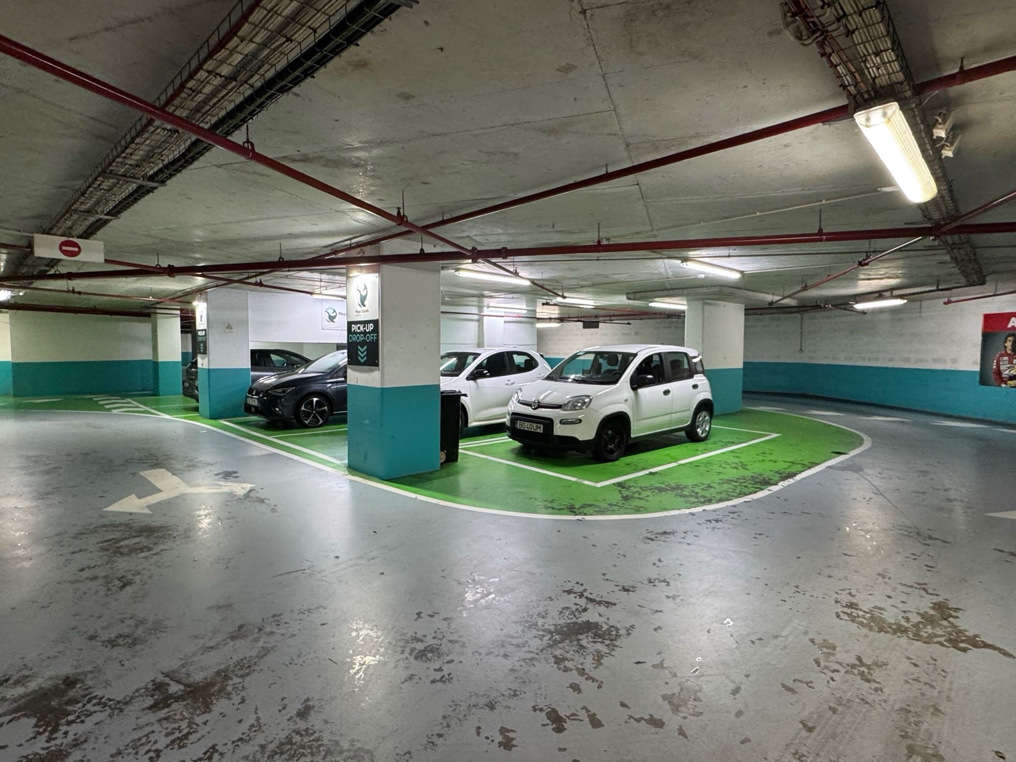 Um das Auto abzugeben, müssen wir in die Tiefgarage von Magic Island in Machico. Wir machen Fotos und ein Video vom Zustand des Autos(unseres steht halb hinter der Säule, das zweite von rechts), um gegebenenfalls nachweisen zu können, dass eventuelle Schäden nicht von uns stammen.