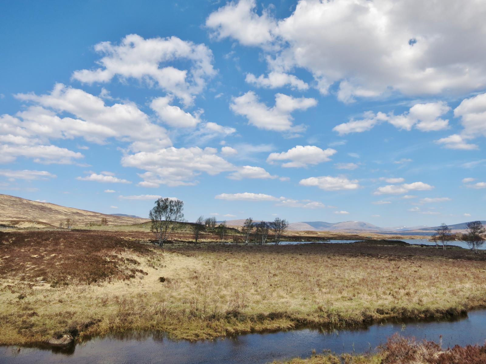 Und wir können in der Ferne eine Ahnung bekommen, was das Wort Highlands bedeutet. Schneebedeckte Berge, malerische Gipfel und ungeahnte Weite.
