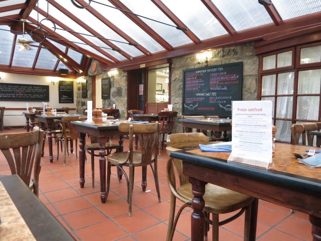 Die Teile sind in Schottland scheinbar so beliebt, dass sie sogar mit der Post verschickt werden. www.piesbypost.co.uk. Die Tische sind fast alle reserviert und während wir in herrlicher Ruhe am Vorabend speisen fallen Punkt 18 Uhr schick gekleidete Schotten zum Abendessen ein. Im Nu ist das Restaurant voll und alle sind eifrig am Schnattern und Bestellen.